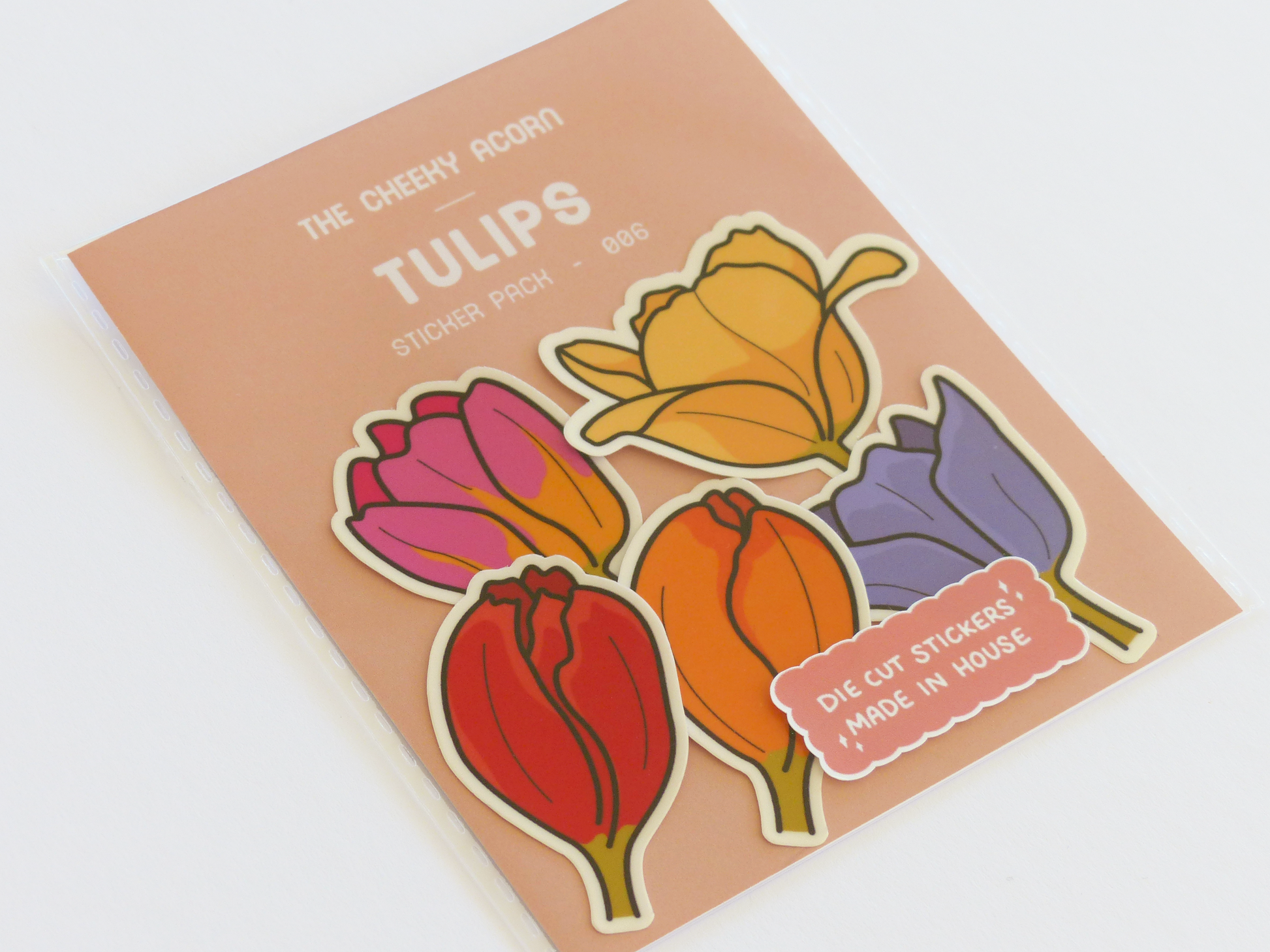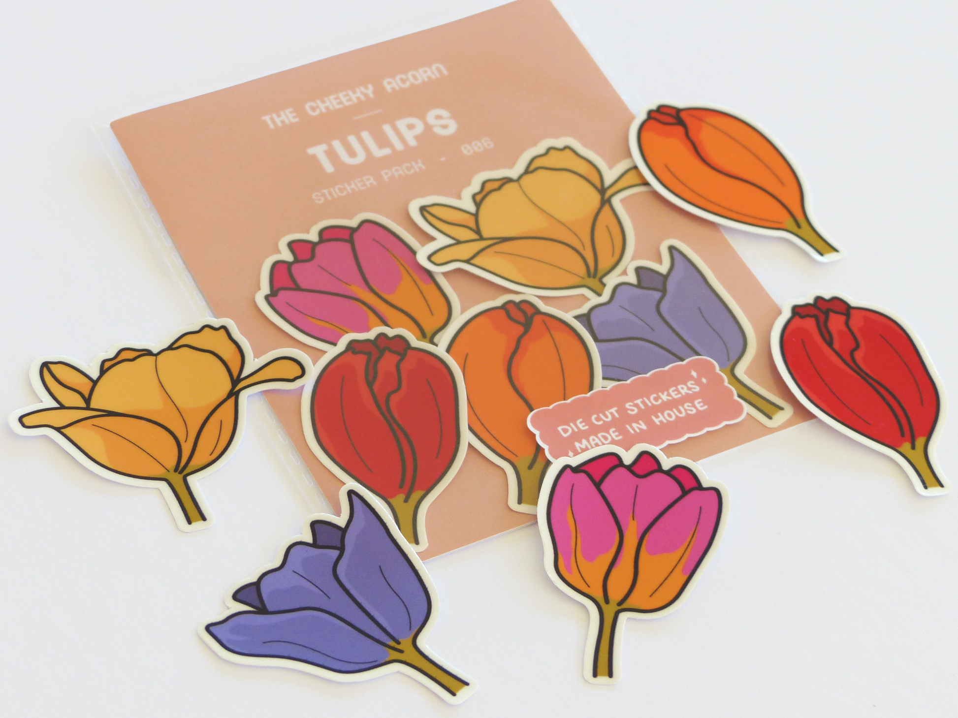 Tulip sticker pack contains 5 cute colourful tulip designs on premium vinyl sticker paper.